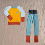 A classic merino wool base layer set with a color-blocked top and versatile legging pant in our signature grow-with-me style. Set includes: