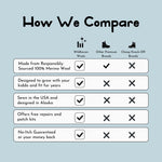 Our base layers are designed so you will only need one set to last several years. Grow-with-me design means our clothes fit 3x longer than conventional kids clothing, saving our customers time and money and keeping waste out of the landfill.