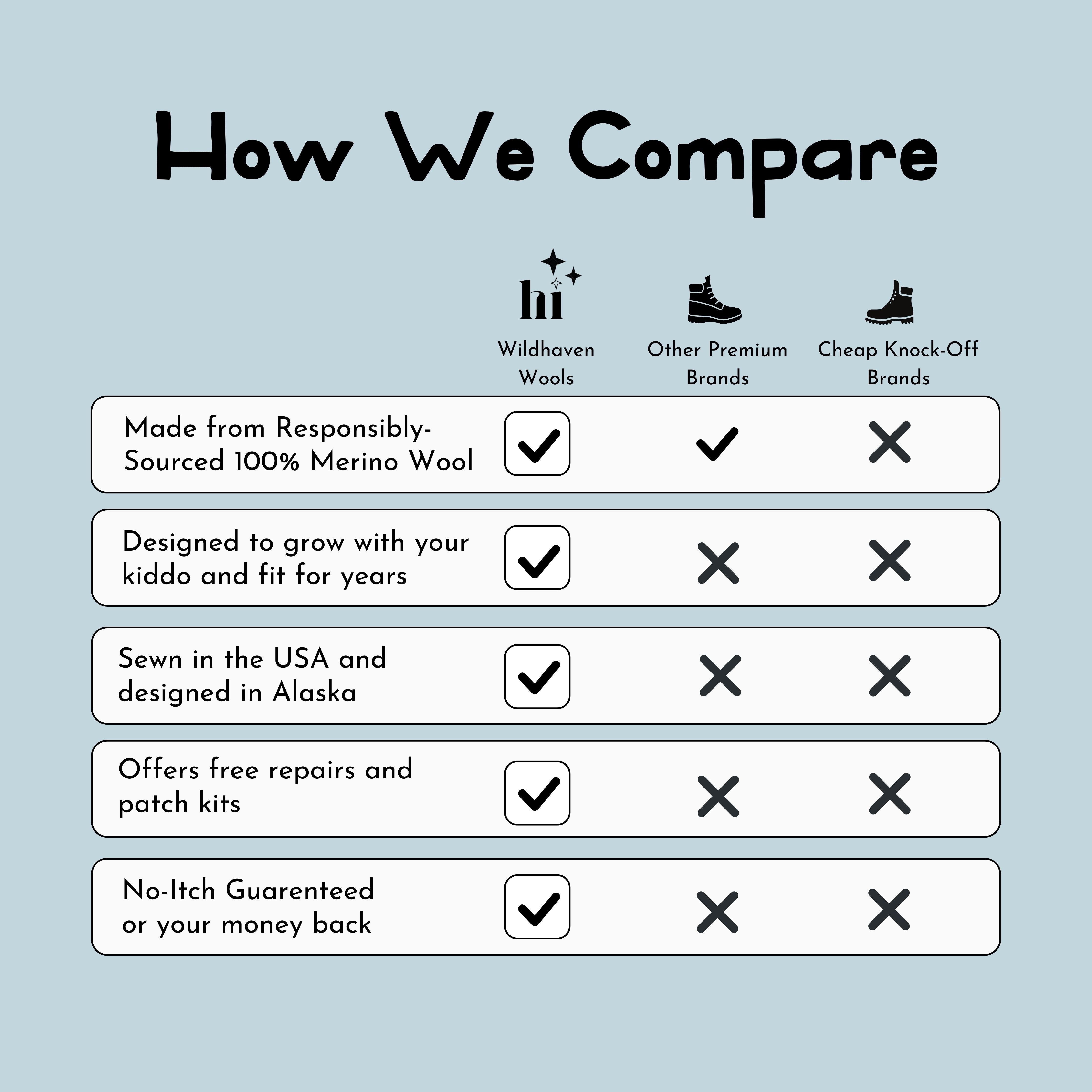 At Wildhaven, we call ourselves a "sustainable kids clothing brand", but what does that mean? To us, that means using natural biodegradable materials like merino wool and sourcing from ethical factories with the highest eco-standards. It also means making practical durable kids clothes that last, not just for one season, but for years.